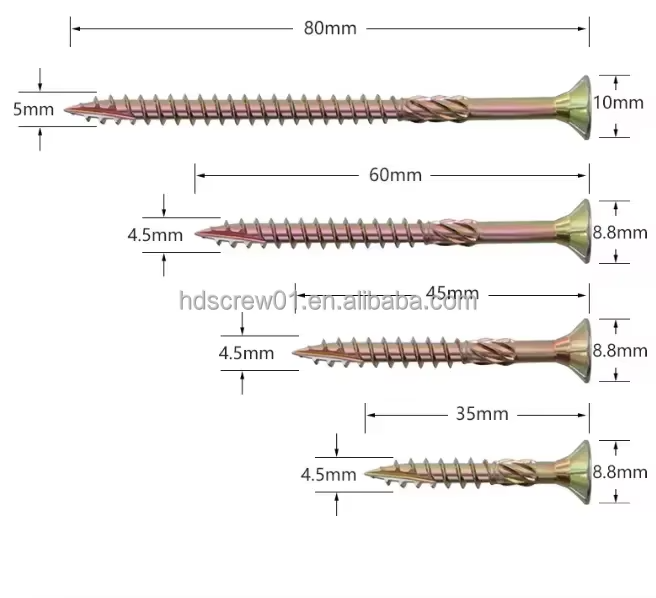 Featuring a smooth round head design, they install neatly without damaging wood surfaces, while sharp self-tapping threads penetrate hardwood, softwood, chipboard and plywood effortlessly, no pre-drilling required for most woodworking projects.